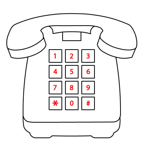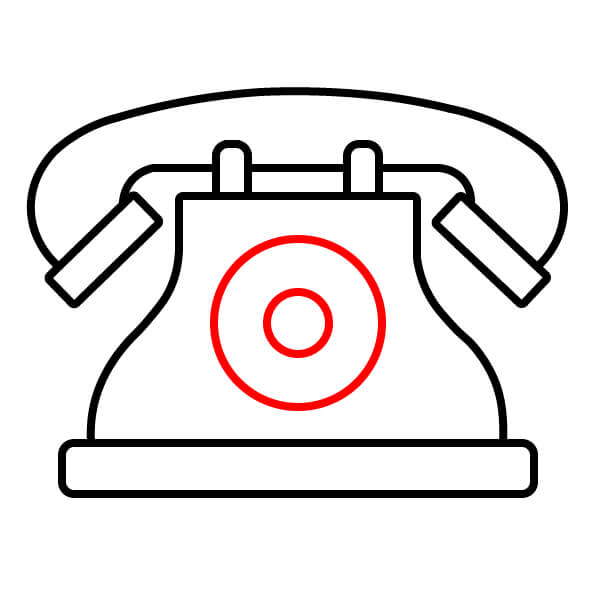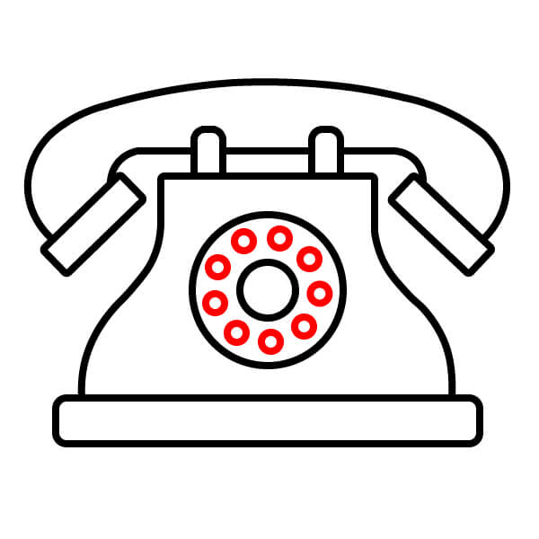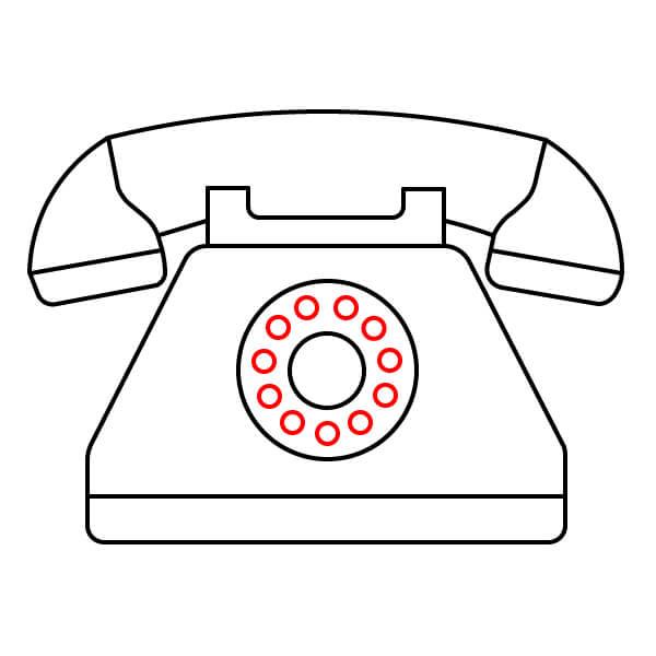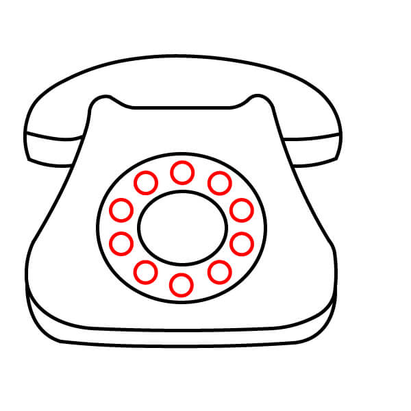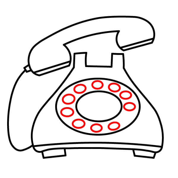 Väritä lopullinen piirros. Käytä punaista puhelimen runkoon ja korvanapiin, vihreää ulompaan numeronvalitsimeen, sinistä numeroreikiin ja keltaista keskelle.