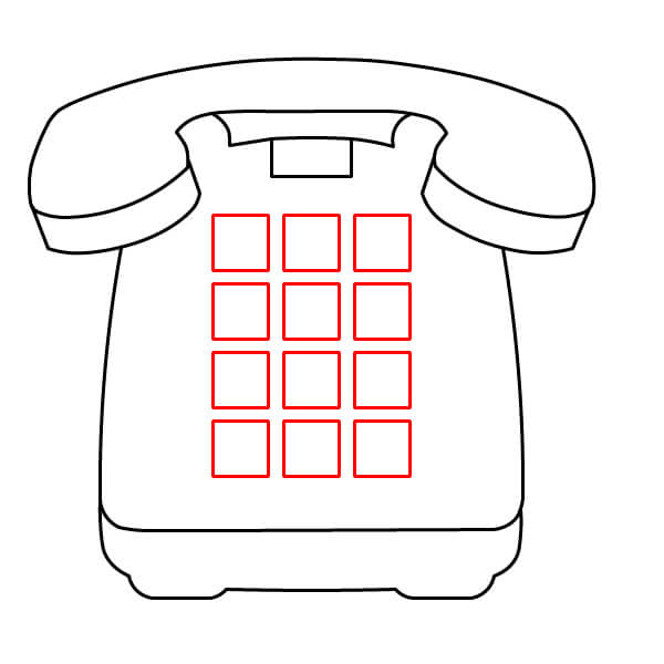 Piirrä puhelimen runkoon kahdentoista neliön ruudukko näppäimistöä varten. Järjestä ne neljään riviin, joissa kussakin on kolme neliötä.