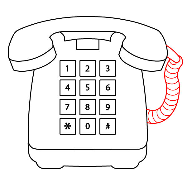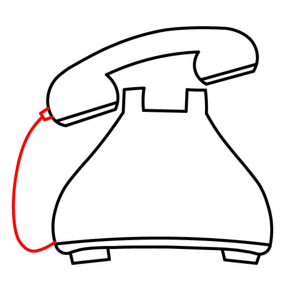 Piirrä luurin ja puhelimen pohjan yhdistävä kierretty lanka. Aloita luurin reunasta ja jatka pohjan reunaan sarjalla yhdensuuntaisia, aaltoilevia, tiiviitä viivoja.