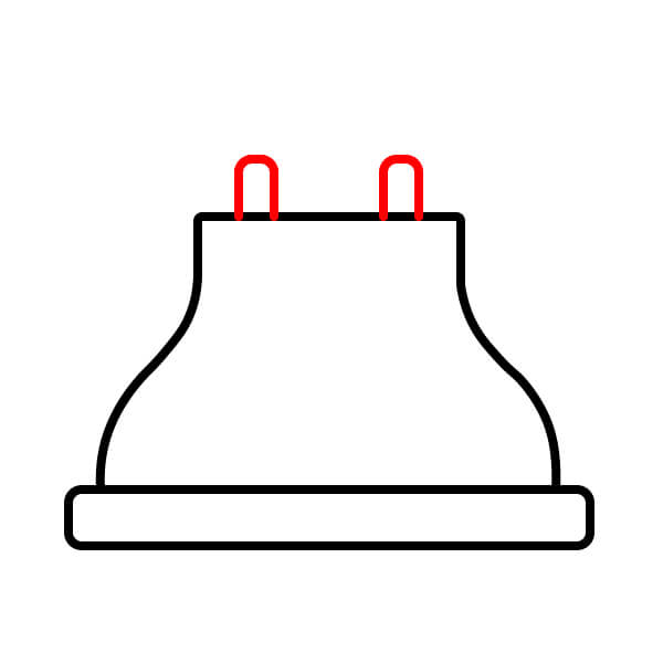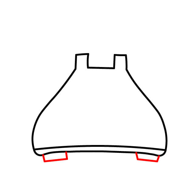 Piirrä kaksi pientä, pyöreää jalustaa jalustan pohjaan, vasemmalle ja oikealle puolelle.