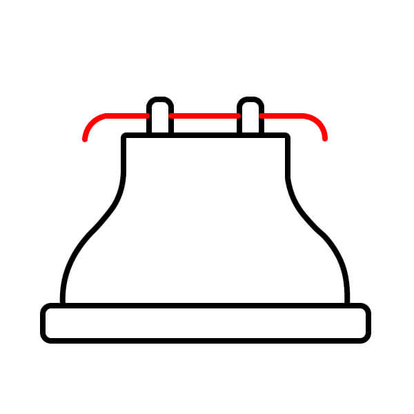 Piirrä pieni vaakasuora viiva, joka yhdistää kaksi jalustaa, ja lisää pieni alaspäin suuntautuva kaari kummastakin jalustasta rungon reunaa kohti.
