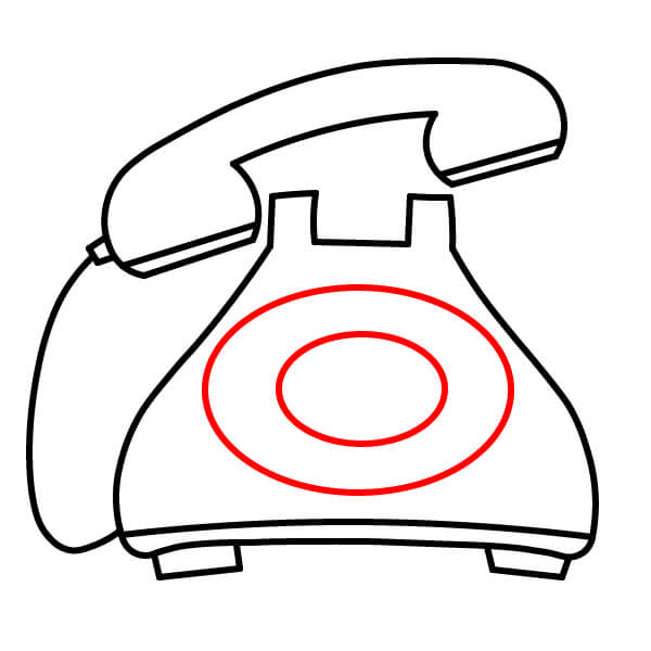 Piirrä puhelimen rungon etuosan keskelle suuri ulompi soikio/ympyrä ja pienempi, samankeskinen sisempi soikio/ympyrä numeronvalitsinmekanismia varten.