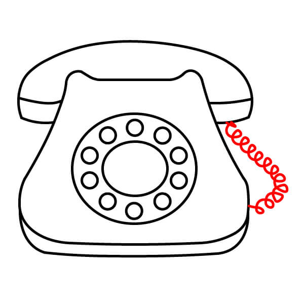 Lisää kierretty lanka, joka yhdistää tukiaseman luuriin. Piirrä sarja tiukasti kierrettyjä, jousimaisia ympyröitä tukiaseman reunasta ylöspäin kohti kohtaa, johon luuri on kytketty.