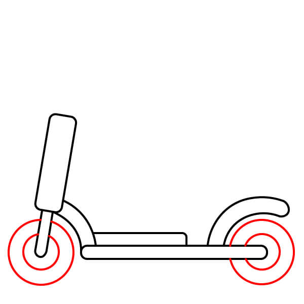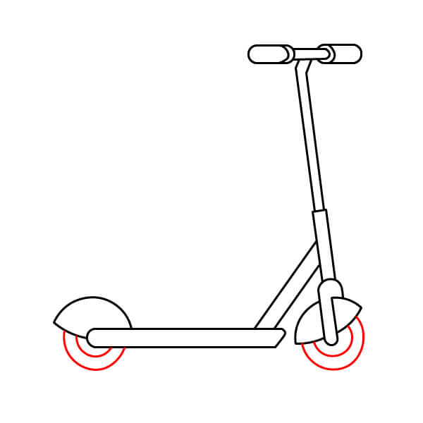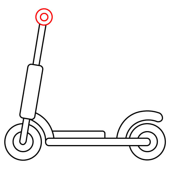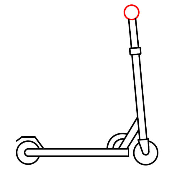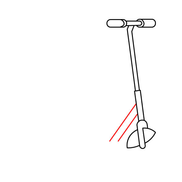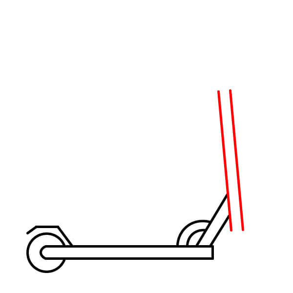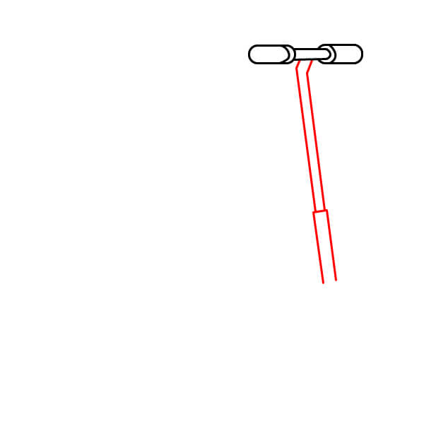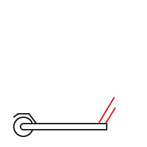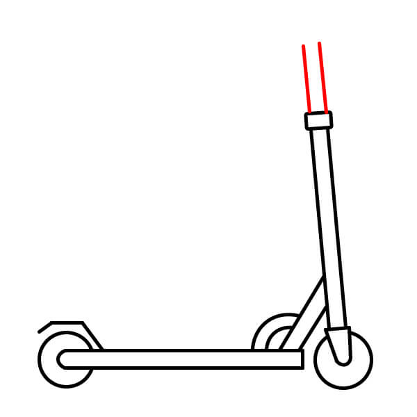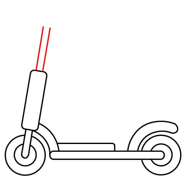 Vaihe 10: Piirrä kaksi lisää yhdensuuntaista viivaa, jotka ulottuvat pystysuunnassa ylöspäin vaiheessa 9 piirretystä pienestä suorakulmiosta. Nämä edustavat skootterin ohjaustankoa.