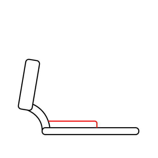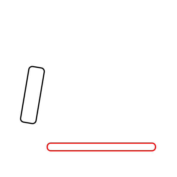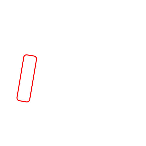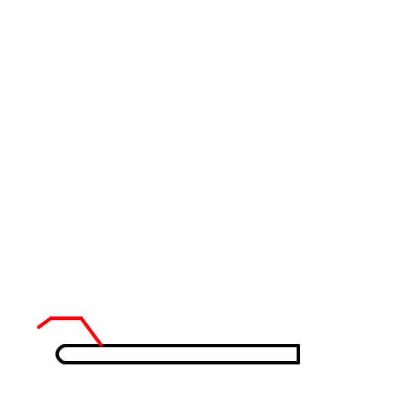 Vaihe 2: Lisää pyöristetyn suorakulmion vasemmalle puolelle pieni, kulmikas viivasegmentti, joka ulottuu hieman ylöspäin ja vasemmalle. Tämä alkaa muodostaa takapyörän lokasuojaa.