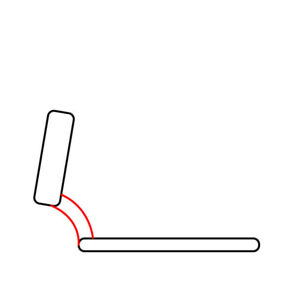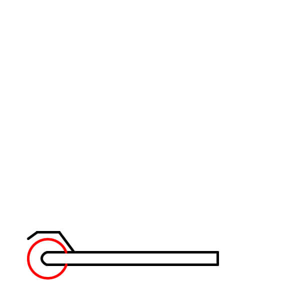 Vaihe 4: Piirrä pyöristetyn suorakulmion oikealle puolelle kaksi lyhyttä, yhdensuuntaista, vinoviivaa, jotka ulottuvat ylöspäin ja oikealle. Nämä viivat ovat osa mekanismia, joka yhdistää etupyörän kanteen.