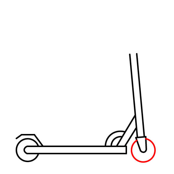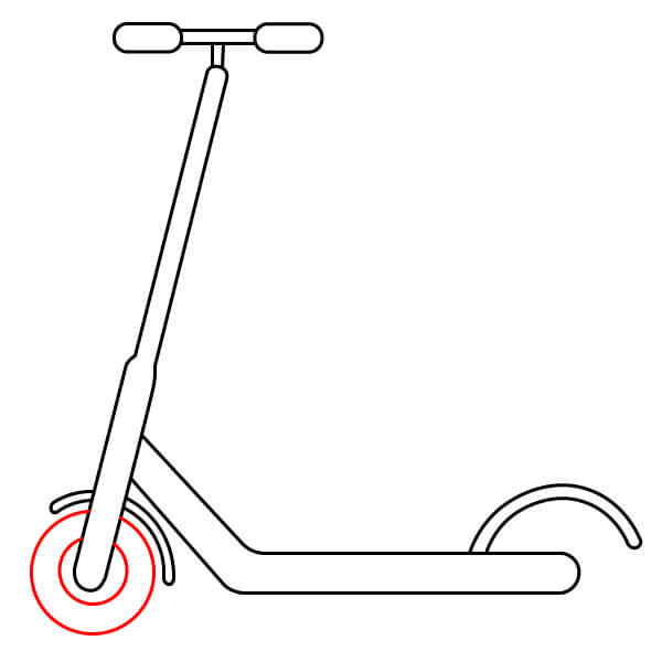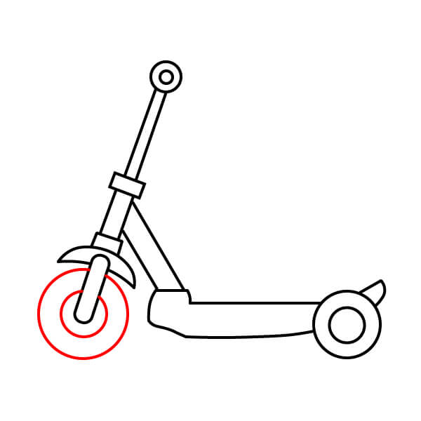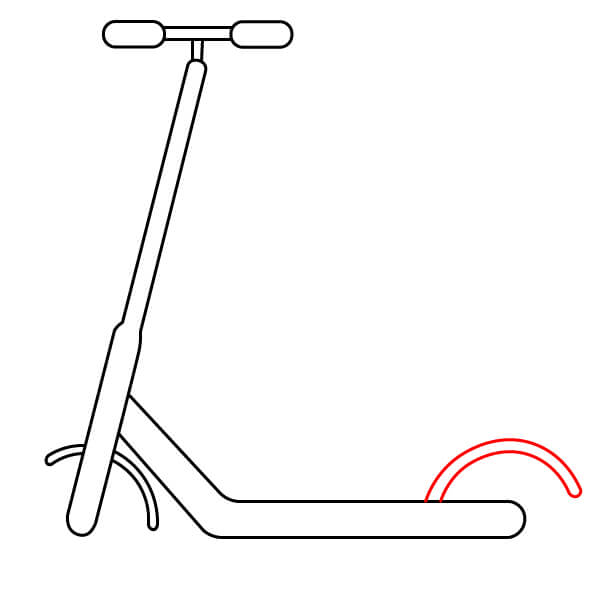 Vaihe 3: Piirrä skootterin etuosaan kaareva, U-muotoinen viiva. Tämä on etuhaarukka, joka pitää pyörää.