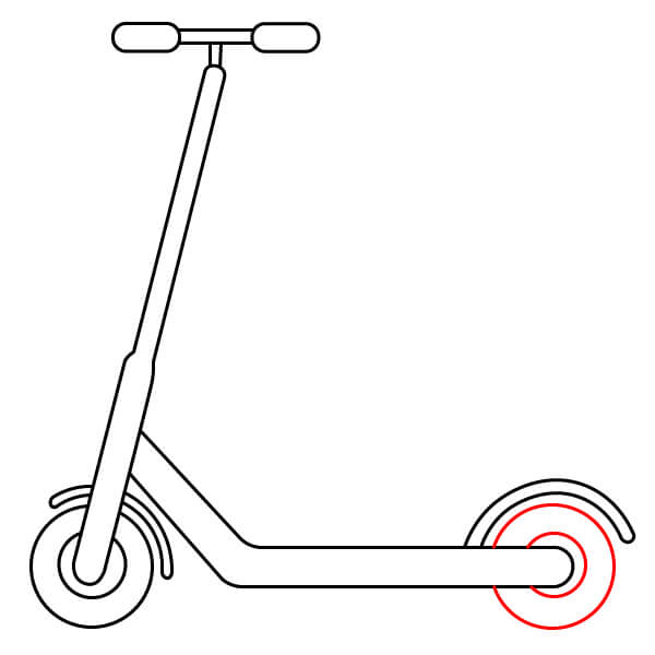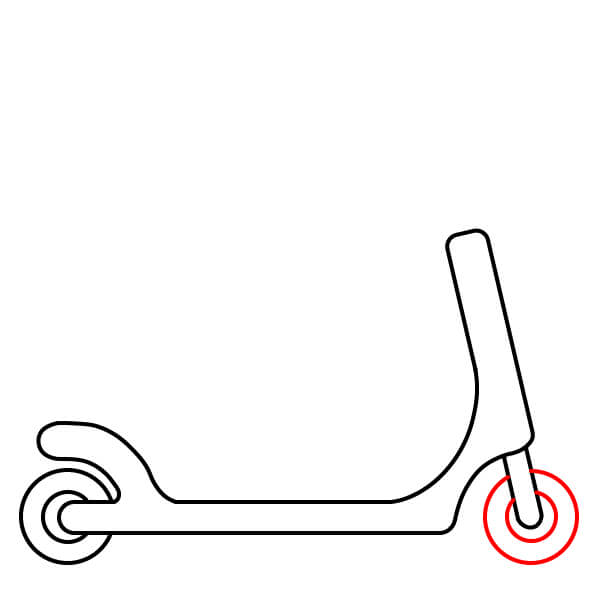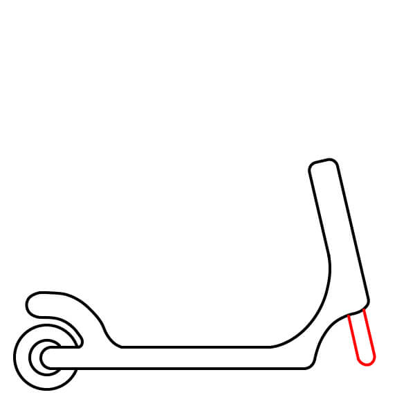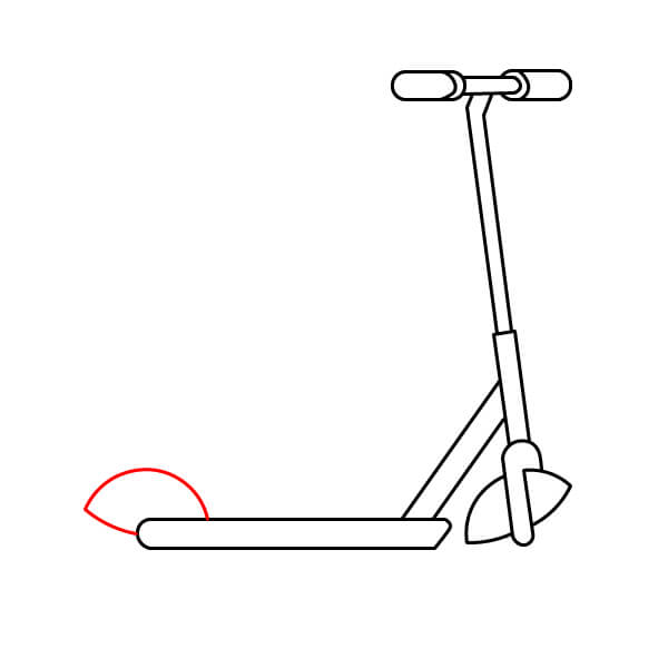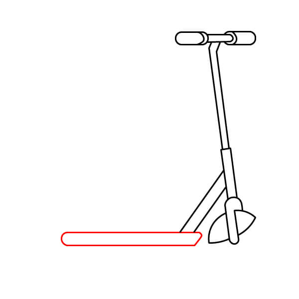 Vaihe 2: Piirrä potkulaudan runko (kansi), joka ulottuu takapyörästä eteenpäin.
