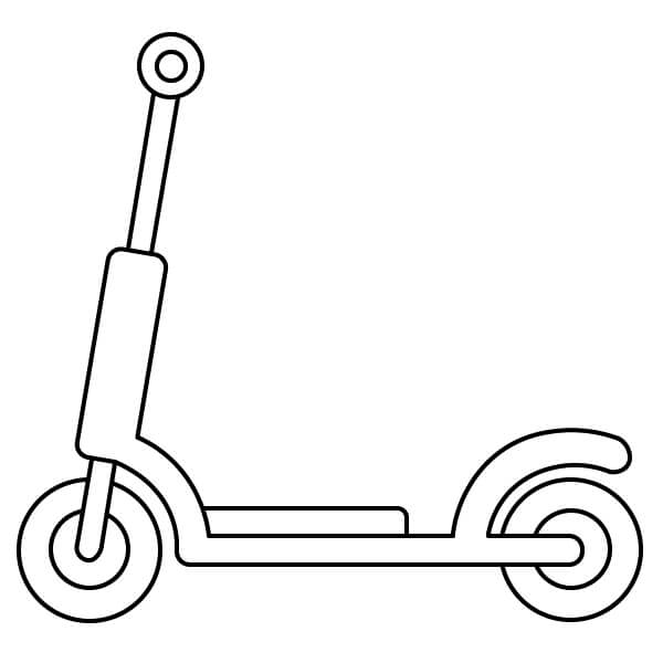 Vaihe 11: Täytä koko skootterin runko – mukaan lukien kansi, pääkannatin ja lokasuojat – kirkkaan sinisellä. Väritä vaaleanharmaalla kapea ohjaustangon ohjainkannatin, joka ulottuu ylöspäin rungosta. Väritä ohjaustangon yläosassa oleva pyöreä kahva tummanharmaaksi tai mustaksi. Täytä renkaat tummanharmaalla tai mustalla ja sisemmät ympyrät vaaleamman harmaalla.