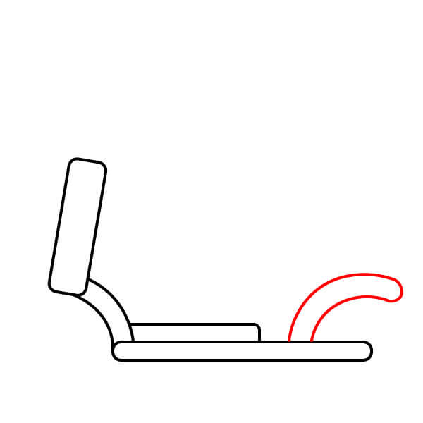 Vaihe 3: Piirrä nyt kansi. Jatka pitkää, vaakasuoraa, pyöristettyä muotoa oikealle juuri piirtämäsi rungon alareunasta. Tämä on tasanne, jolla seisot.