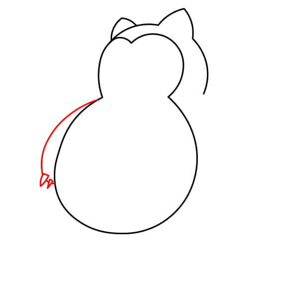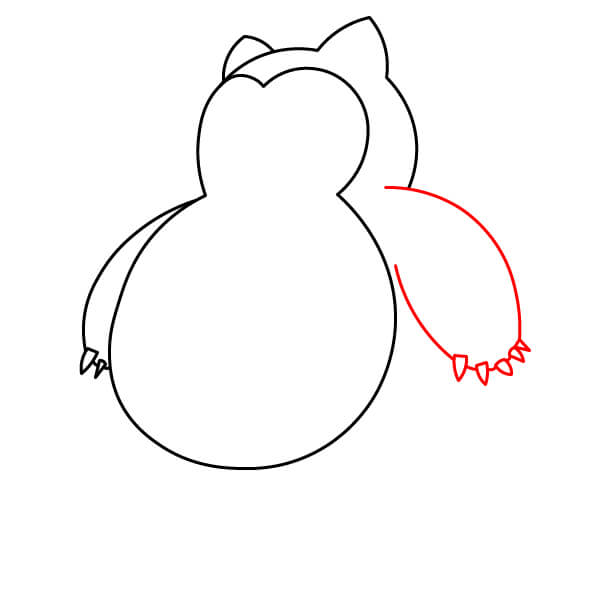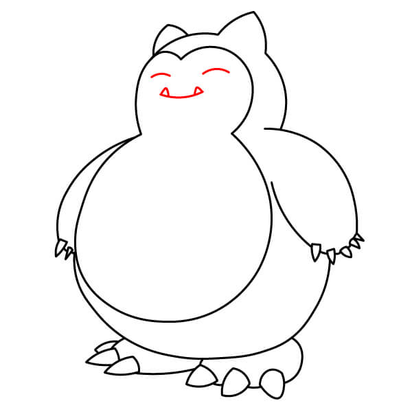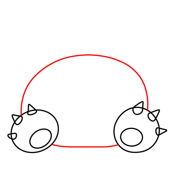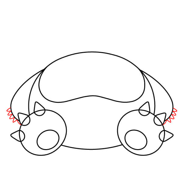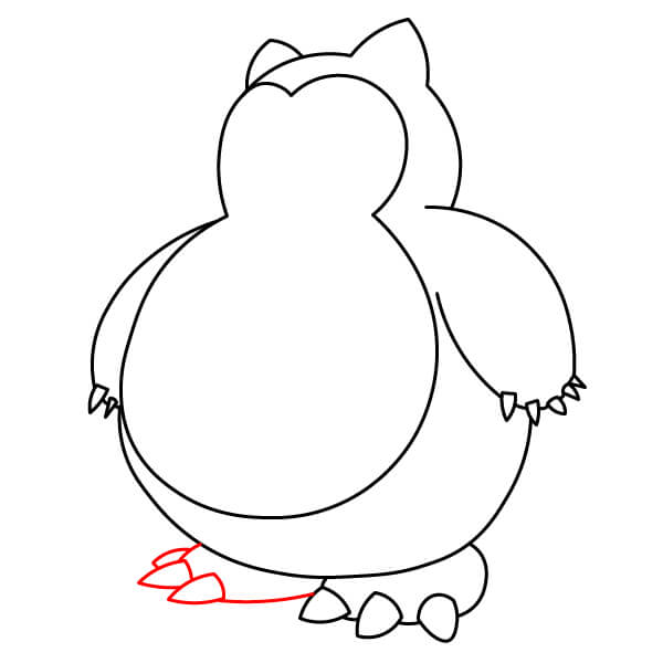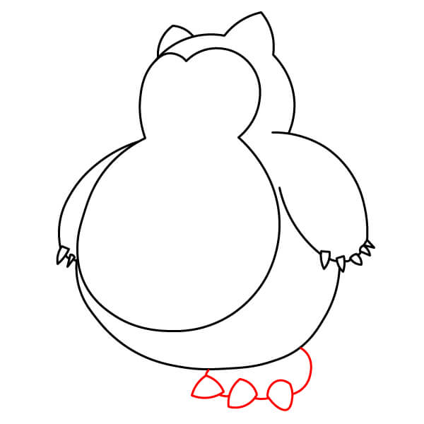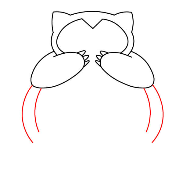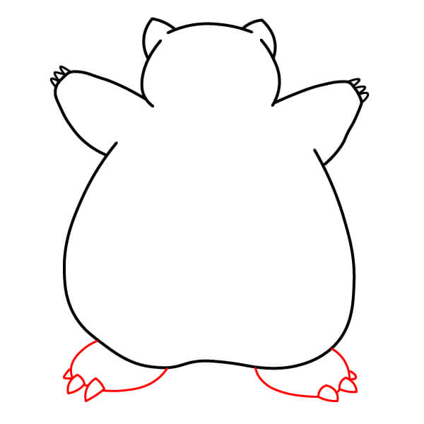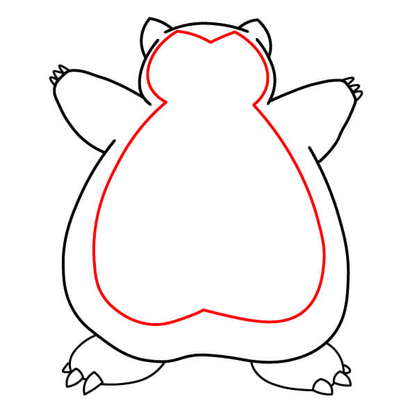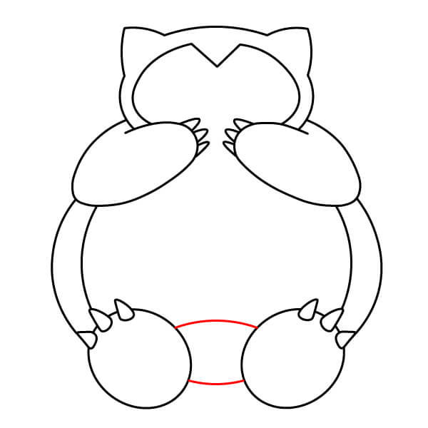 Sulje vartalon muodon alaosa piirtämällä kaksi kaarevaa viivaa, jotka yhdistävät jalkojen sisäpuolet. Tämä muodostaa pienen tilan Snorlaxin jalkojen väliin.