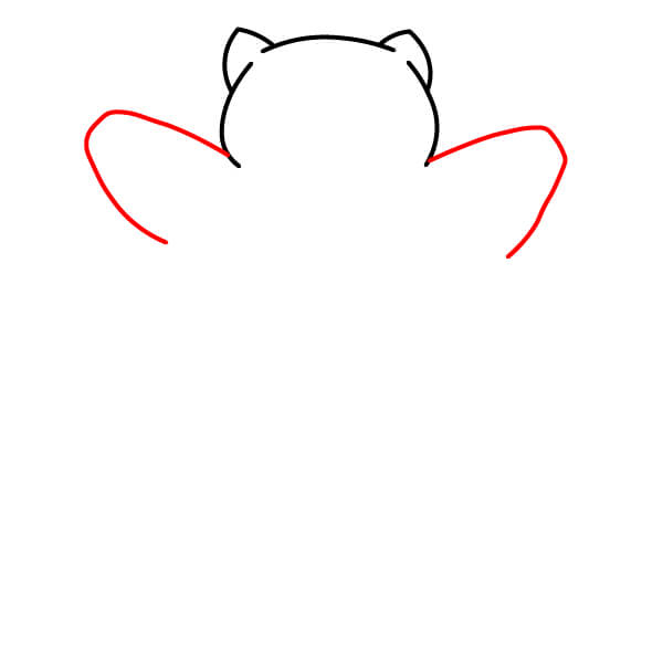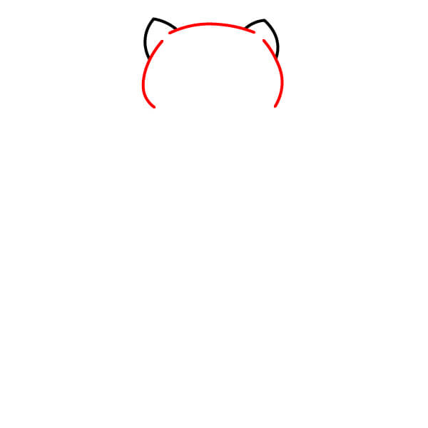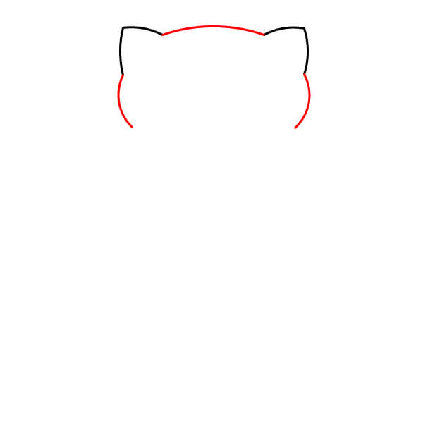 Viimeistele pään muoto yhdistämällä kaksi korvaviivaa kaarevalla yläosalla ja hieman kaarevilla sivuilla. Tämä muodostaa pään ja korvien perusääriviivat.