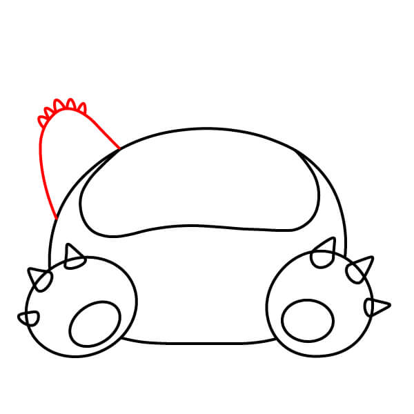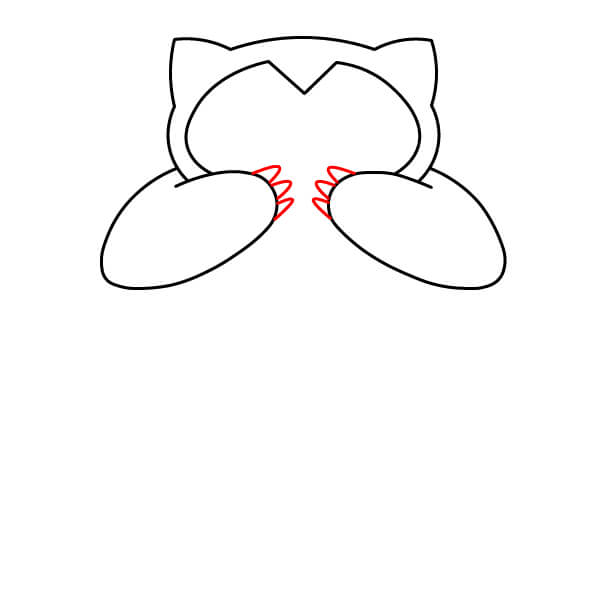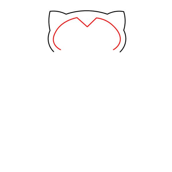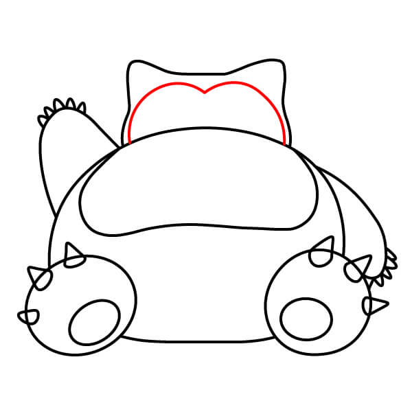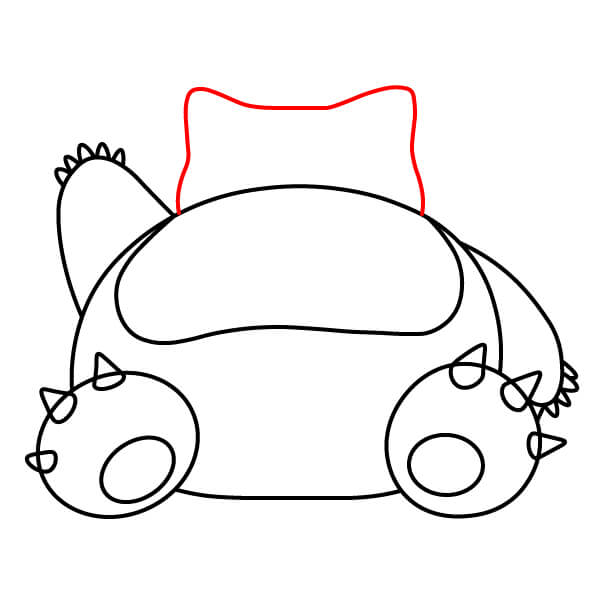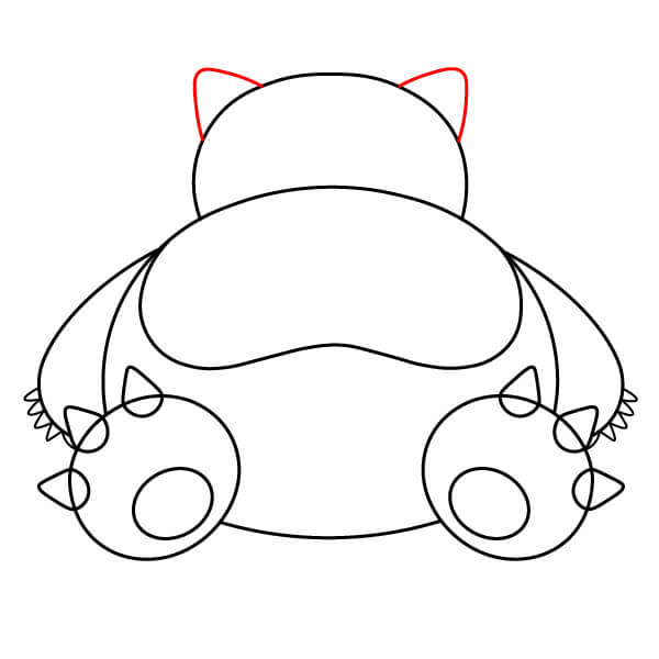 Piirrä kaksi pientä, terävää muotoa pään ympyrän päälle luodaksesi Snorlaxin korvat.