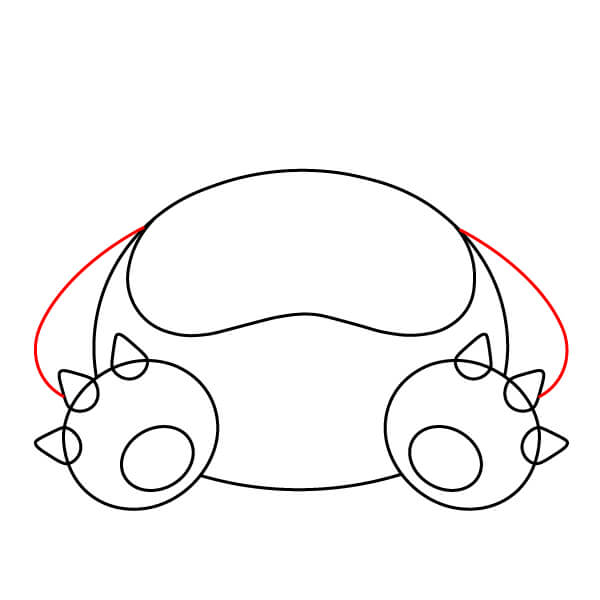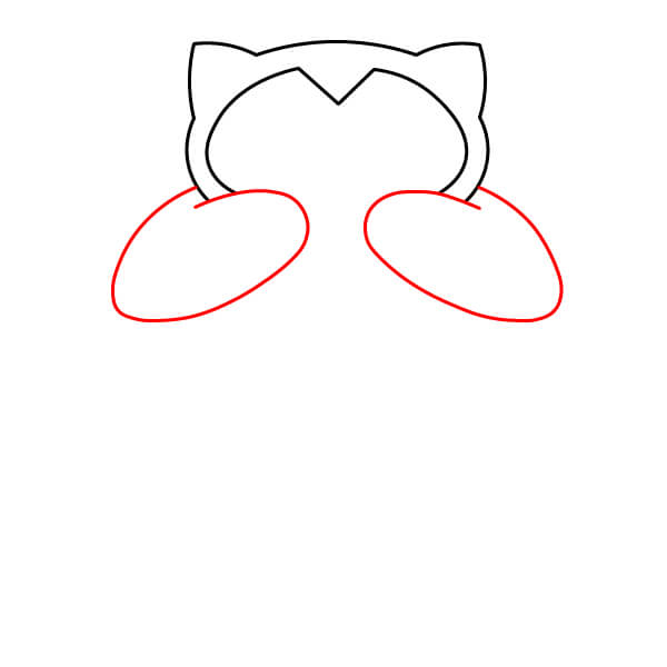 Piirrä kaksi suurta, soikeaa/kaarevaa muotoa pään alle, hieman sisäänpäin kulmassa. Nämä ovat Snorlaxin käsivarsien yläosat, jotka lepäävät sen rinnalla.