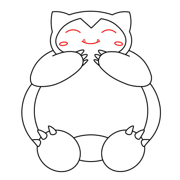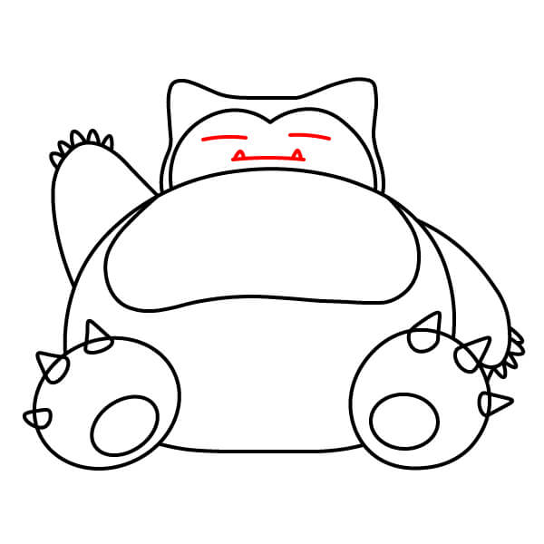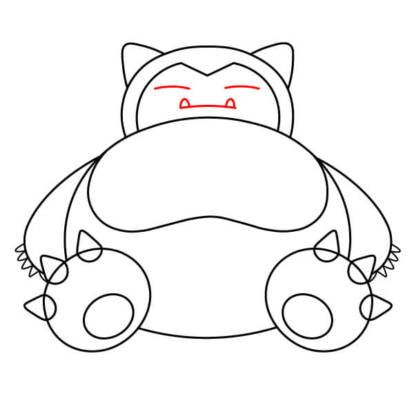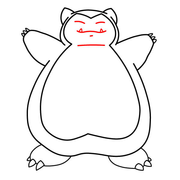 Päämuodon sisäpuolelle piirrä suuri, kaareva viiva, joka taittuu V-muotoon keskellä yläosassa. Tämä ääriviivat vaaleamman värisen naamion Snorlaxin kasvojen ympärillä.