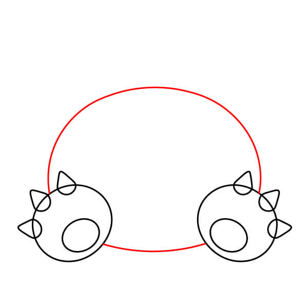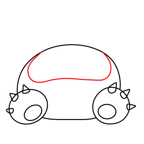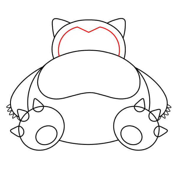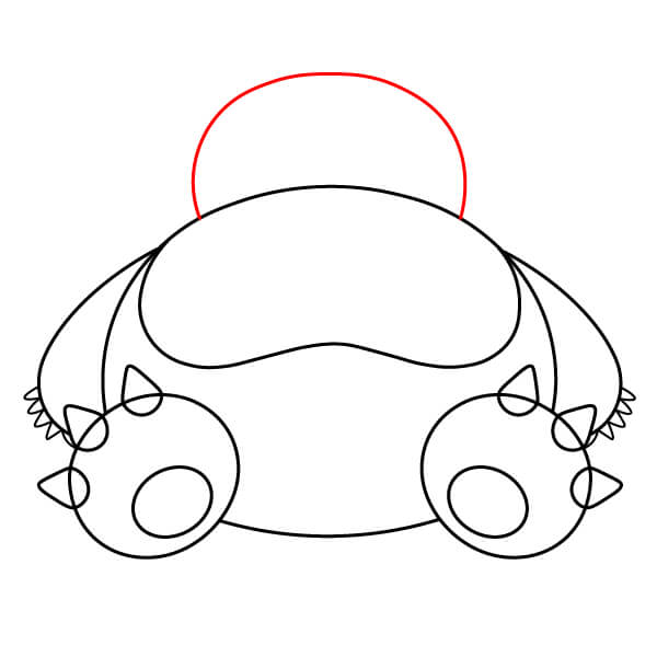 Piirrä suuri puoliympyrä tai käyrä rungon päälle, keskitettynä rintakehän yläpuolelle. Tämä on Snorlaxin pään pohja.