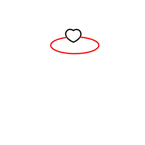 Piirrä sydämen muodon alapuolelle litteä soikio.