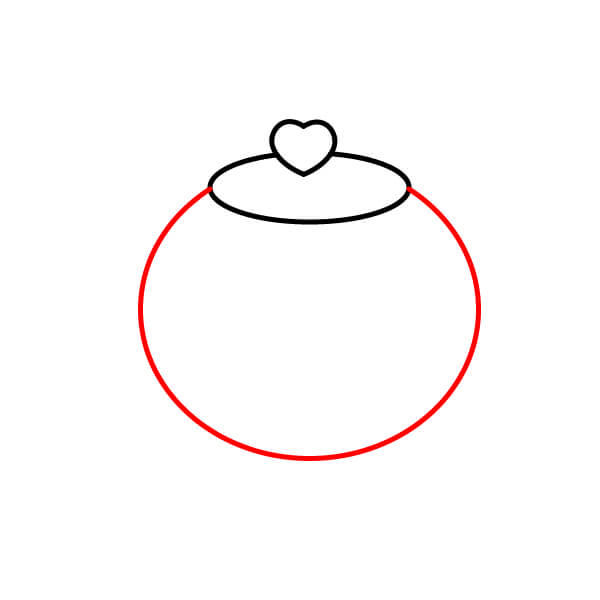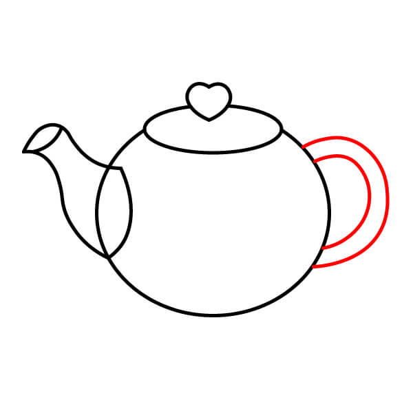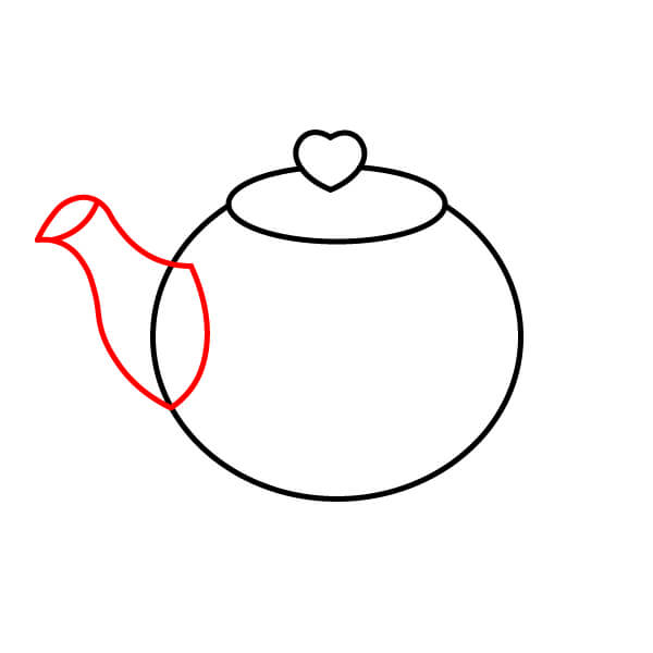 Aloita piirtämällä pieni sydämen muoto teekannun yläosaan. Tämä on kannen koristeellinen nuppi.