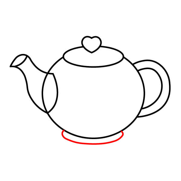 Piirrä päärungon alle lyhyt, leveä, kaareva soikio teekannun pohjaa tai jalkaa varten.