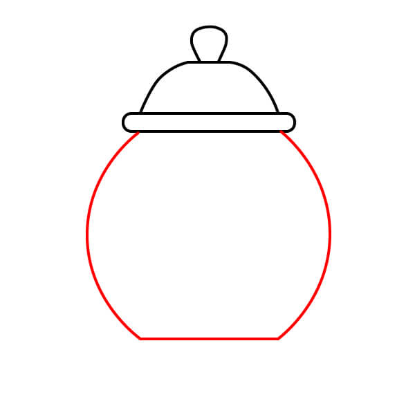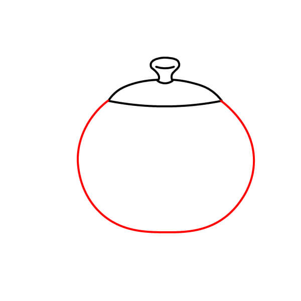 Piirrä suuri ympyrä, joka yhdistyy kannen reunan pohjaan. Tämä muodostaa teekannun pyöreän pääosan.