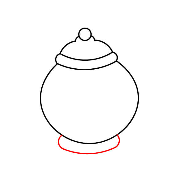 Piirrä pääosan alapuolelle leveä, matala ja kaareva soikio luodaksesi teekannun pohjan tai jalan.