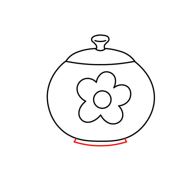 Piirrä rungon alapuolelle lyhyt, hieman kaareva viiva, joka edustaa teekannun pohjaa tai jalkaa.
