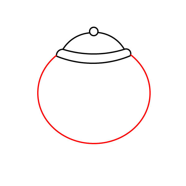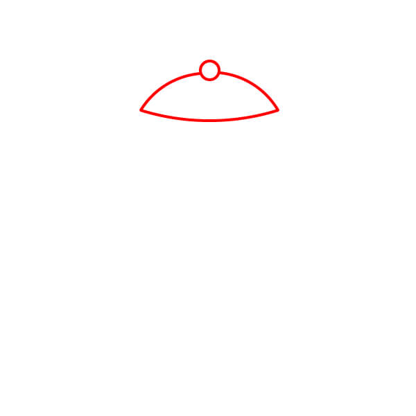 Aloita piirtämällä kansi. Tämä osa on muodoltaan suuri kaari, jonka yläosassa on pieni, pyöreä rengas, joka toimii kannen kahvana.