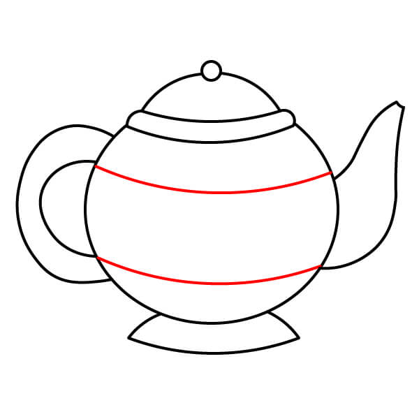 Piirrä teekannun keskelle kaksi vaakasuoraa viivaa luodaksesi koristeeksi keskelle raidan.
