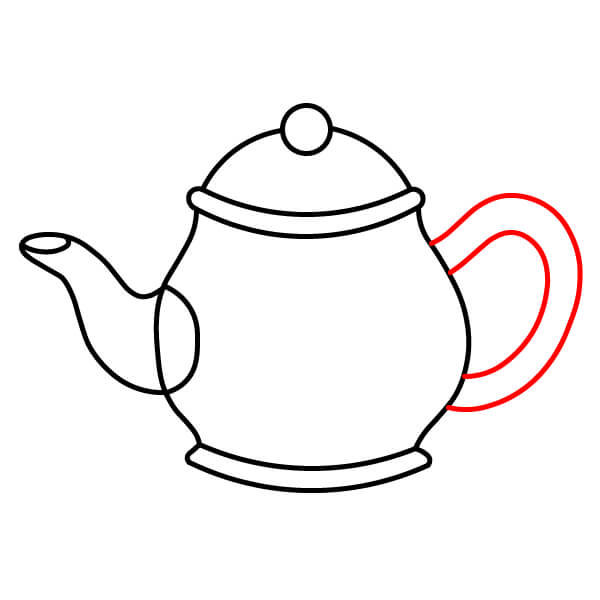 Piirrä teekannun rungon oikealle puolelle kahva. Tämä on yksinkertainen, pyöristetty C-kirjaimen muoto, joka muodostuu kahdesta yhdensuuntaisesta viivasta.