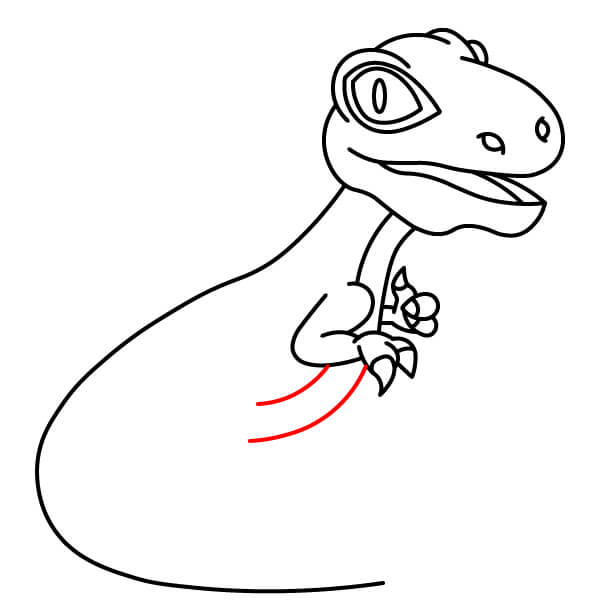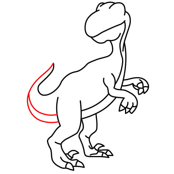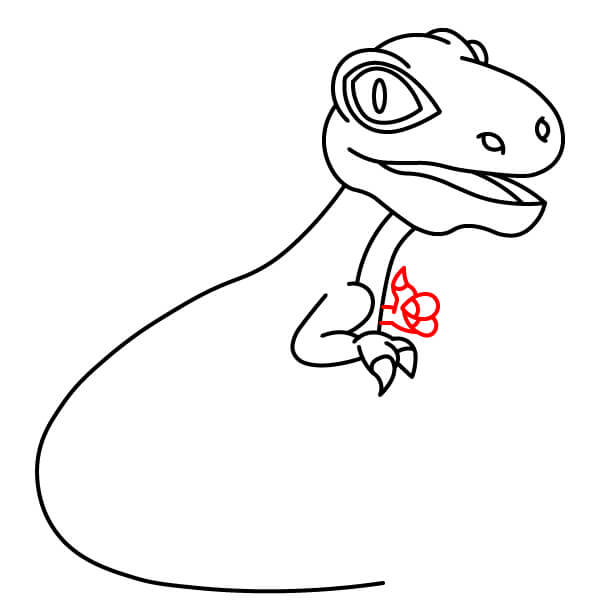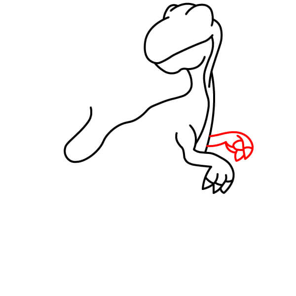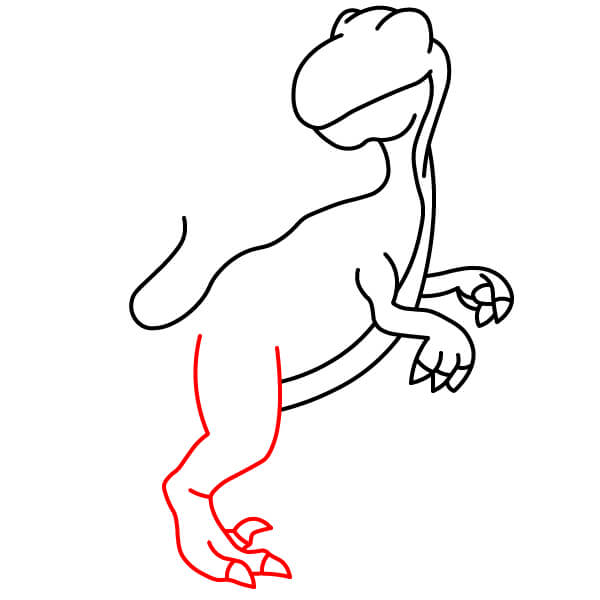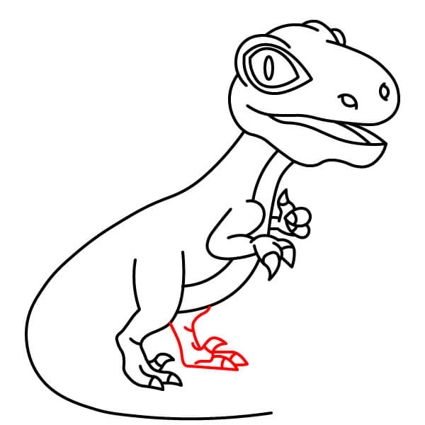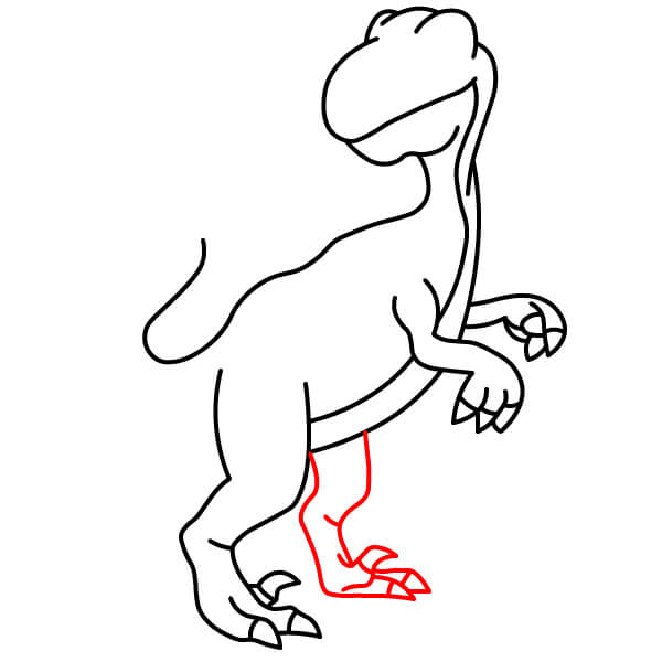 Piirrä suuri käyrä dinosauruksen vasemmalle jalalle ja käpälälle. Lisää alaosaan kolme terävää kynttä.