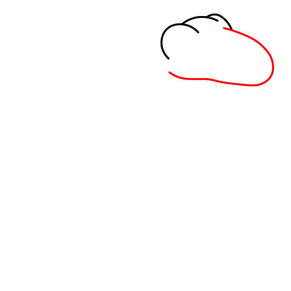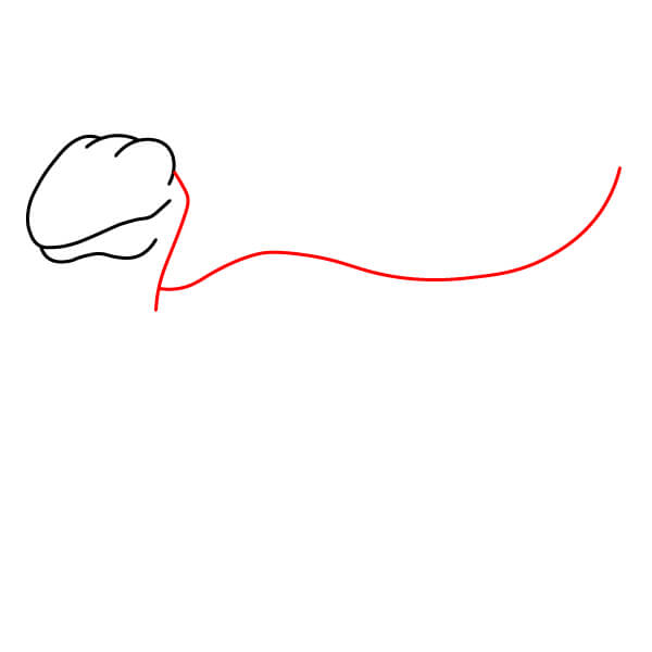 Aloita piirtämällä pitkä käyrä, joka muodostaa dinosauruksen vartalon yläosan, selän ja pään.