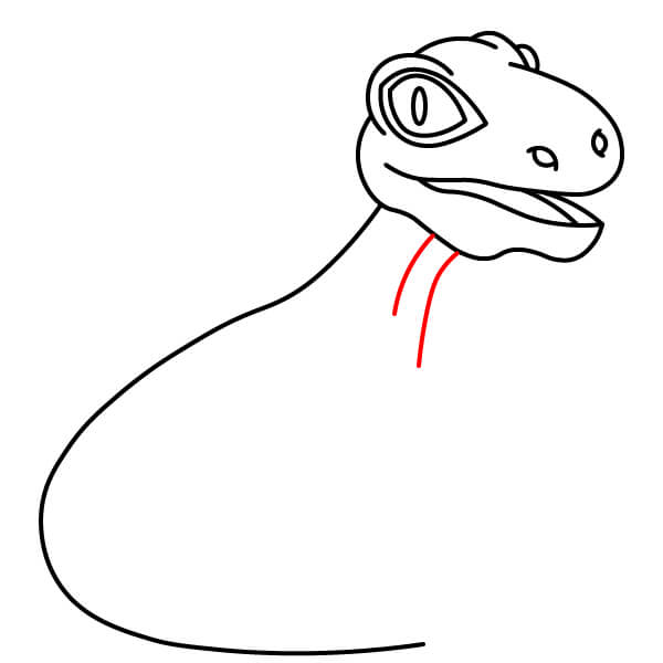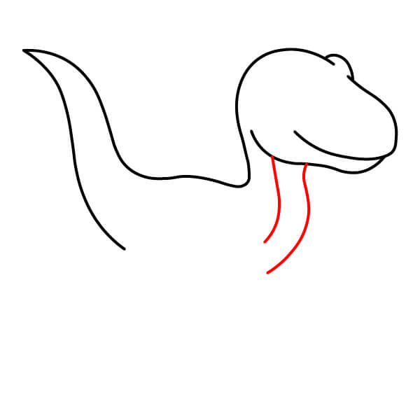 Piirrä pään takaosasta pitkä kaareva viiva, joka kaartuu alaspäin ja sitten suoristuu. Tämä on dinosauruksen selkä ja häntä.