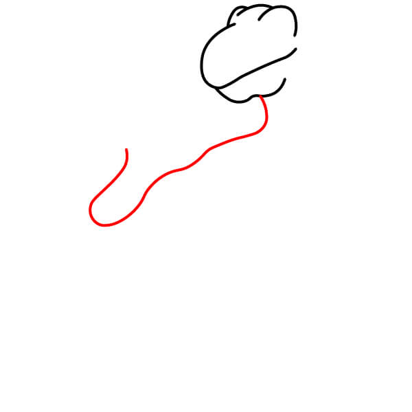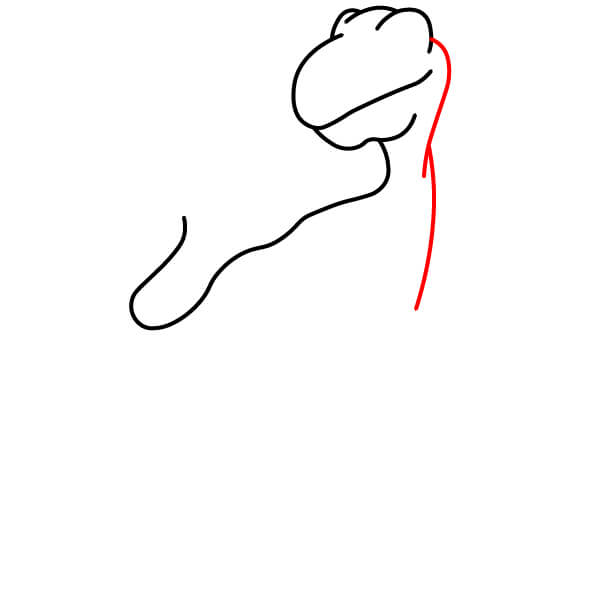 Piirrä nyt pitkä, mutkitteleva viiva, joka alkaa pään yläosasta ja kaartuu alaspäin muodostaen selän ja hännän.