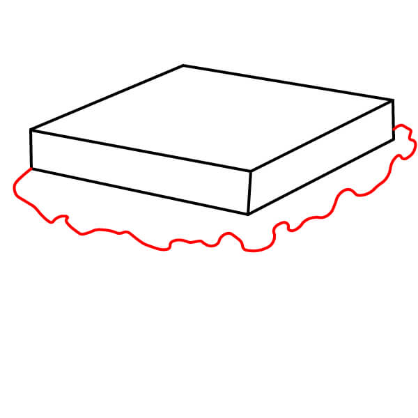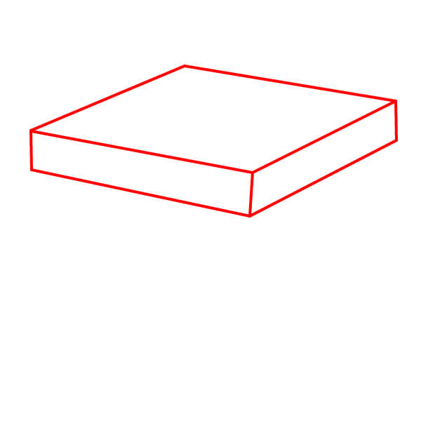 Vaihe 1: Piirrä päällimmäisen leipäviipaleen ääriviivat. Sen tulisi olla kolmiulotteinen suorakulmio, joka näyttää yläosan ja yhden sivun.