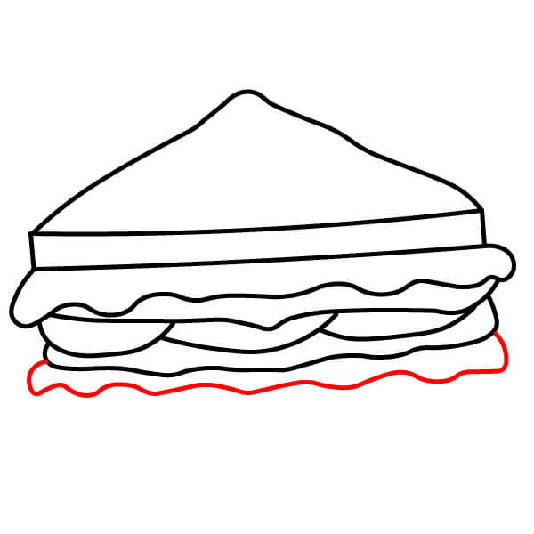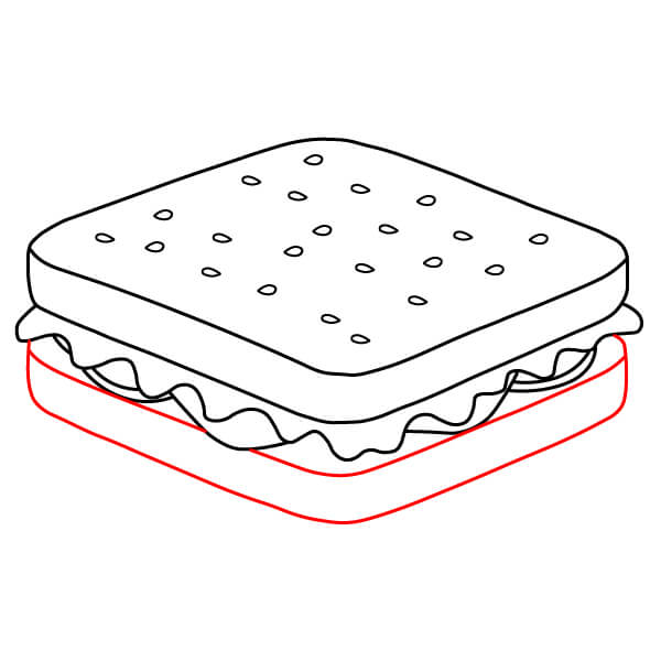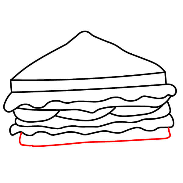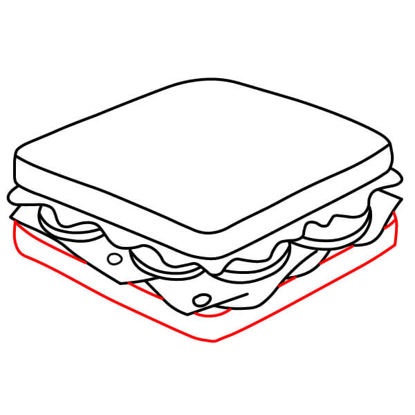 Vaihe 7: Piirrä suora viiva koko voileivän alareunaa varten, luoden pohjan alimmaiselle leipäviipaleelle.
