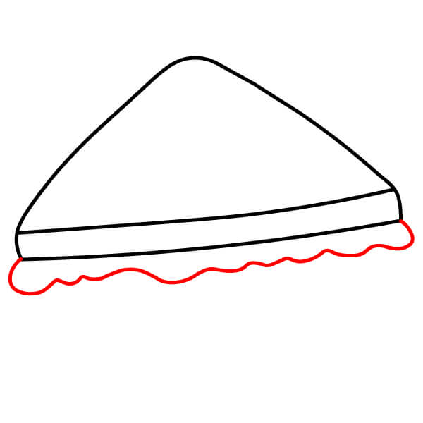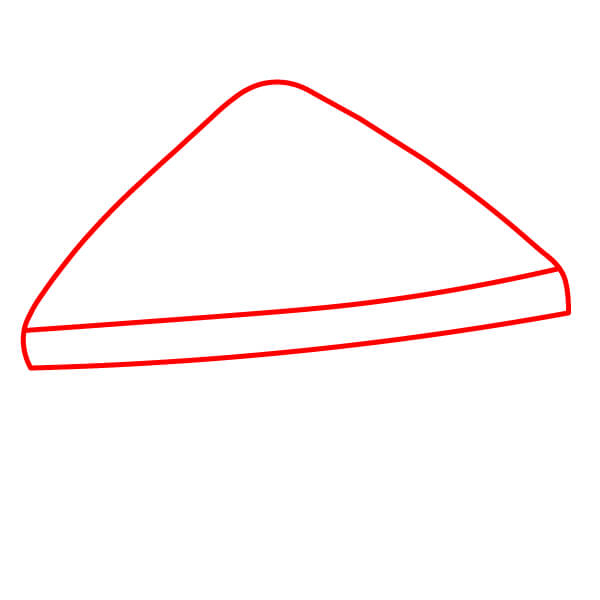 Vaihe 1: Aloita piirtämällä päällimmäisen leipäviipaleen ääriviivat. Se on kolmio, jossa on litteä pohja ja hieman paksua reunaa.