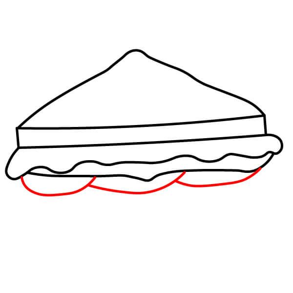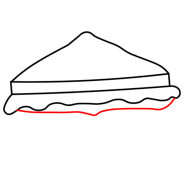 Vaihe 3: Piirrä päällimmäisen leivän alle aaltoviiva, joka osoittaa täytekerroksen, kuten salaattia.